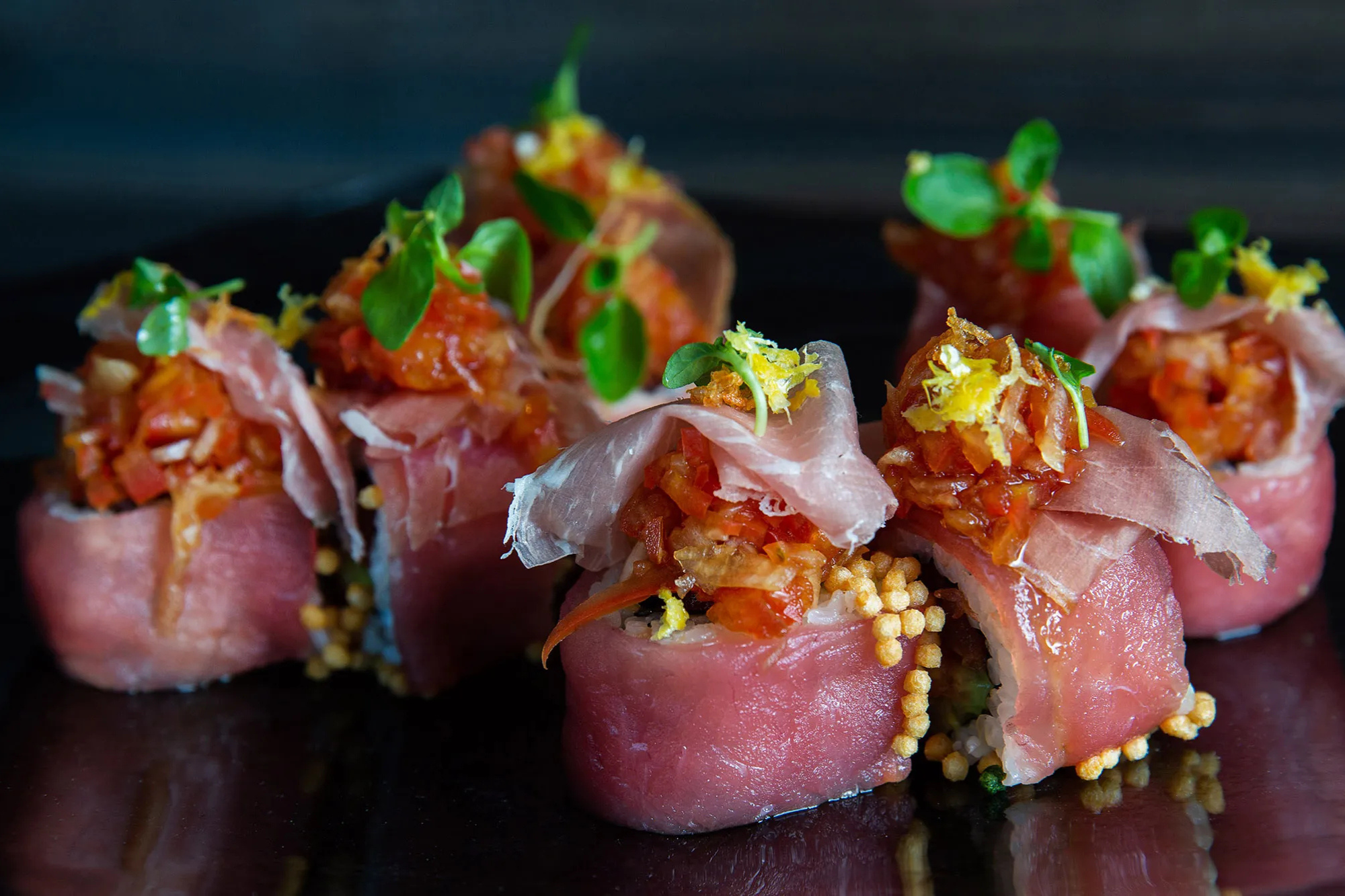 A well-prepared sushi plate might look like a tray filled with elegant little gifts, some wrapped in glossy fish, some held together with dark seaweed containing a delightful bite of rice with a jewel of green avocado, pink shrimp or salmon inside. It’s elegant. Enticing. And perhaps a bit daunting, whether it’s your first time trying a California roll or you’ve decided to put yourself in the sushi chef’s expertly trained hands for omakase.